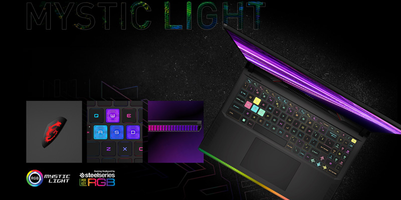 Dải đèn Mystic Light cỡ lớn với nhiều hiệu ứng màu sắc nay chạy hết toàn bộ phần cạnh trước của thân Laptop Gaming MSI Raider GE68 HX 14AVI. Bạn có thể tùy chỉnh chi tiết các hiệu ứng theo ý muốn, với 16.8 triệu màu để lựa chọn, đem lại vô số các cách kết hợp khác nhau để bạn thể hiện phong cách RGB gaming cực đỉnh