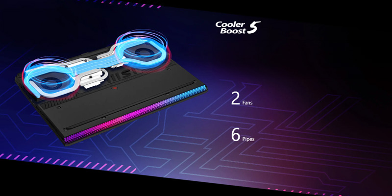 Thiết kế tản nhiệt Cooler Boost 5 trên Laptop Gaming MSI Raider GE68 HX có cụm tản nhiệt riêng cho CPU và GPU. Quạt và ống dẫn nhiệt có kích thước lớn hơn, đảm bảo hiệu năng tối đa ngay cả khi chơi các tựa game cực nặng.